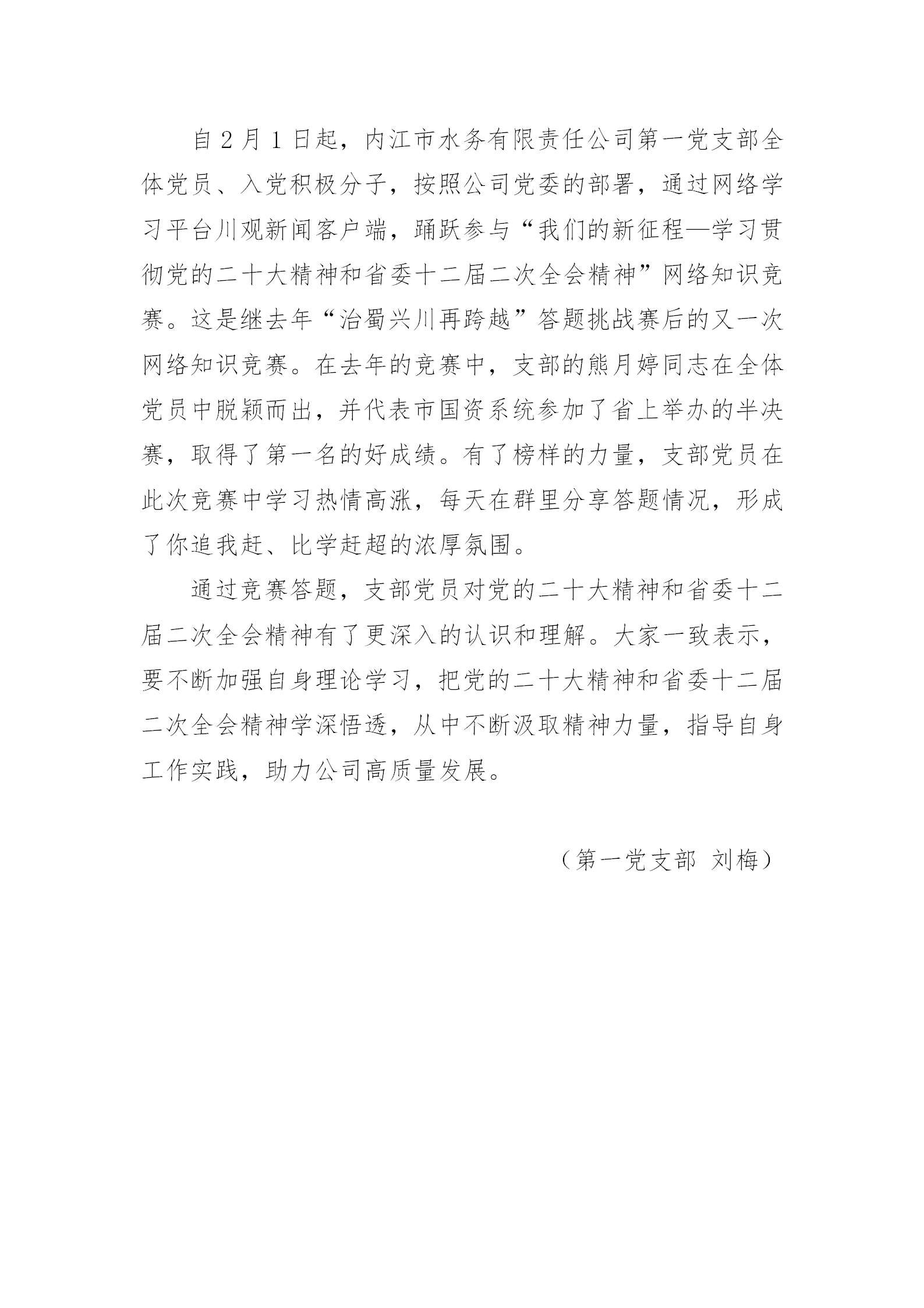 第一黨支部積極參與“學(xué)習(xí)貫徹黨的二十大精神暨省委十二屆二次全會(huì)精神”網(wǎng)絡(luò)知識(shí)競(jìng)賽